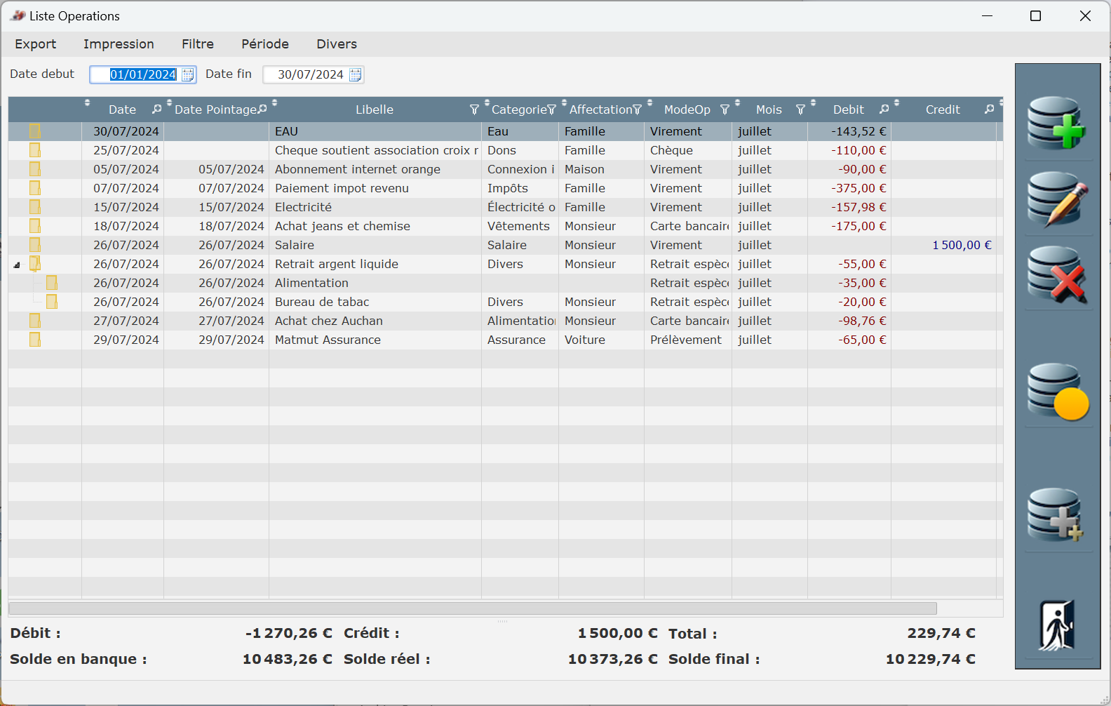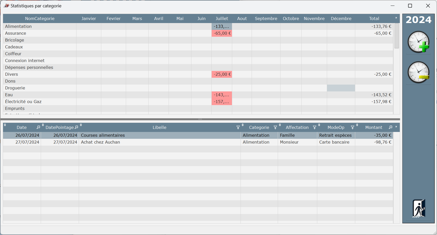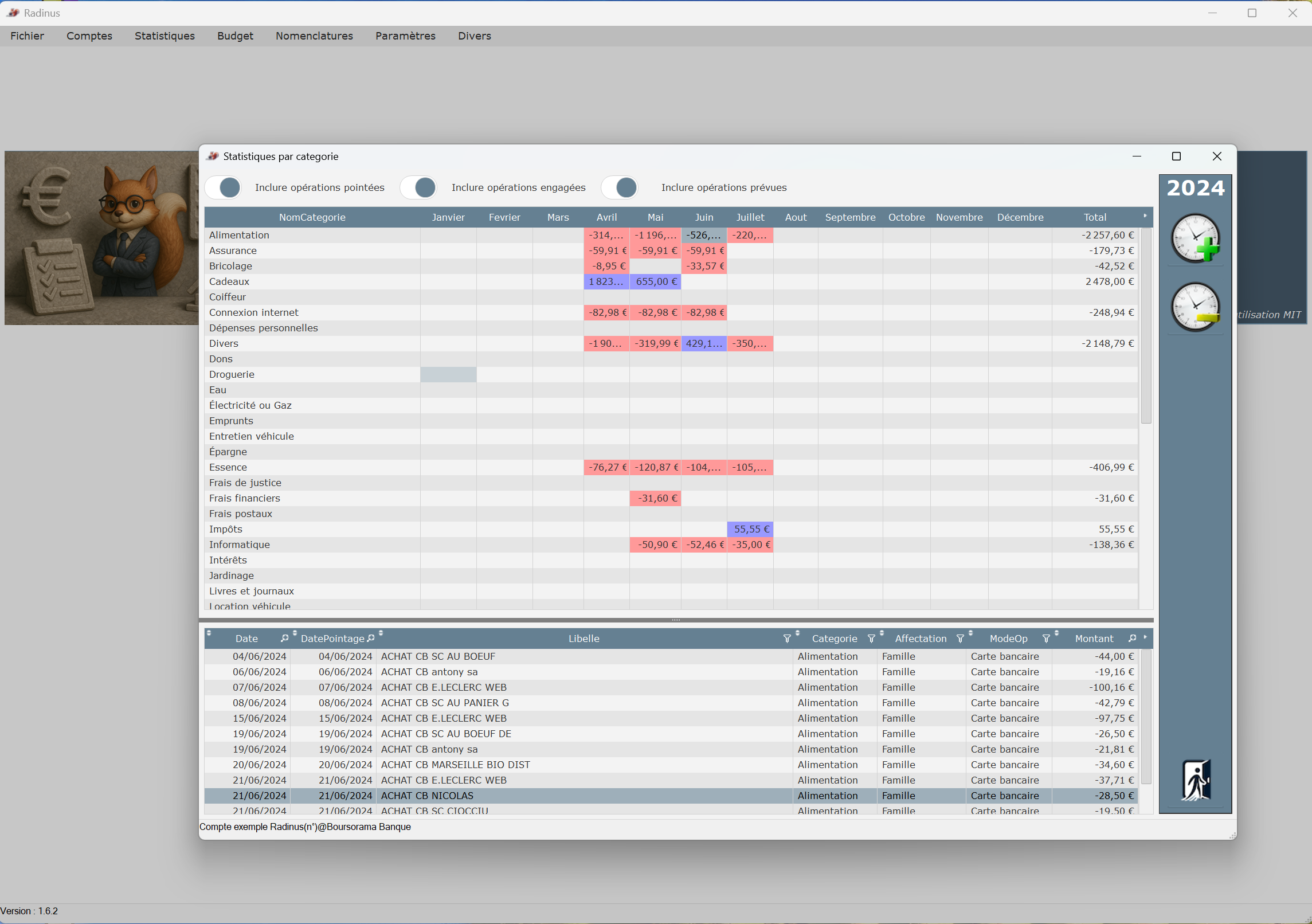 Il permet de catégoriser les opérations selon divers critères et génère des statistiques.